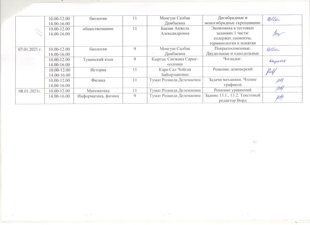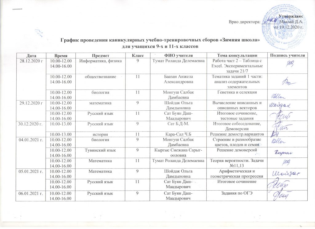 Без рубрики График проведения каникулярных учебно-тренировочных сборов «Зимняя школа» для учащихся 9 и 11 классов 26.12.2020 /